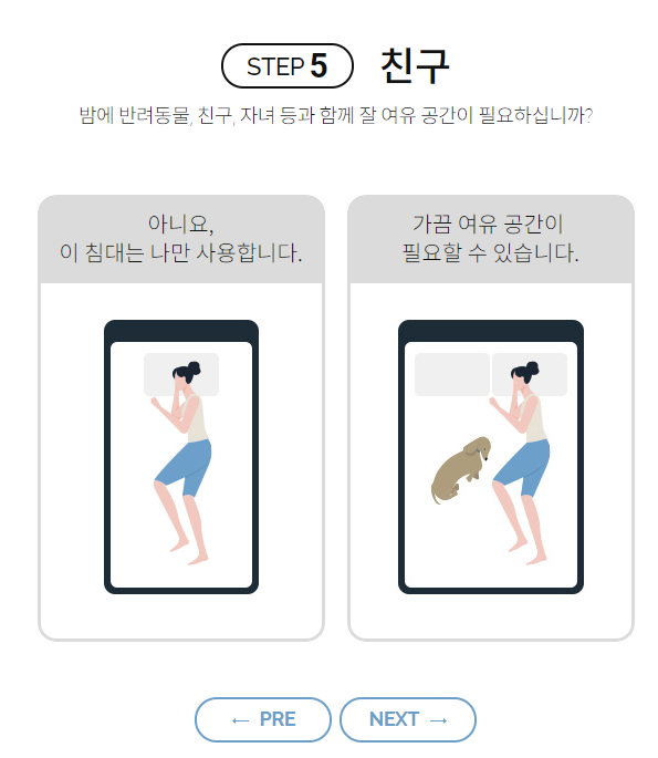 5단계에서는 침대를 혼자 사용할 것인지, 다른 사람과 함께 사용할 것인지를 물어봅니다.