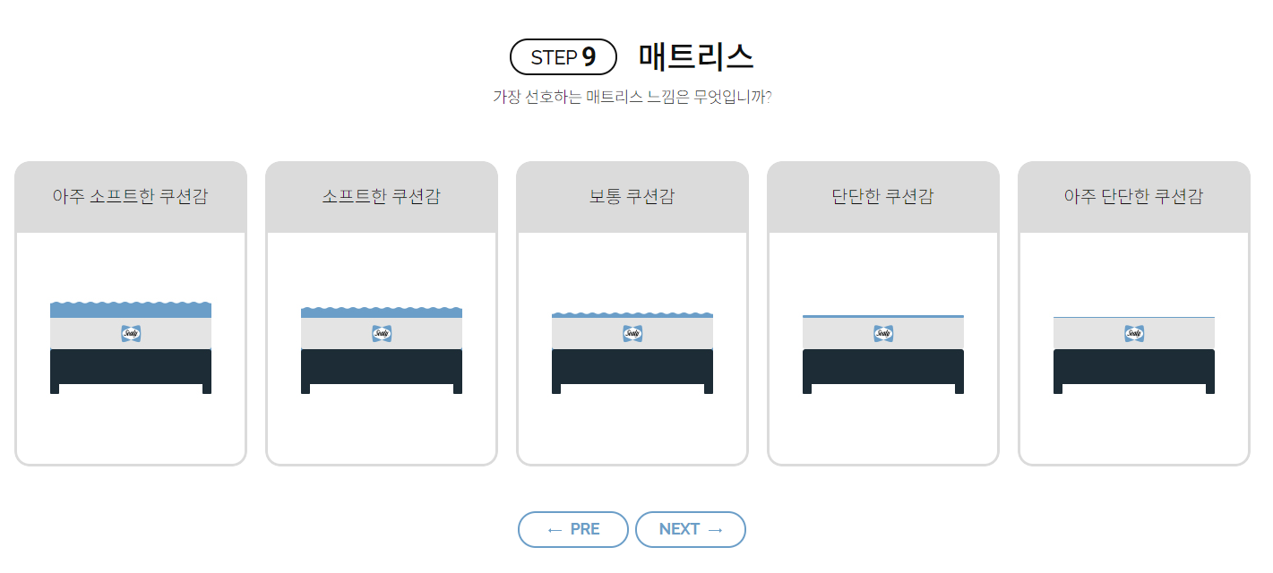 9단계에서는 선호하는 매트리스의 쿠션감(푹신함) 정도를 확인합니다.