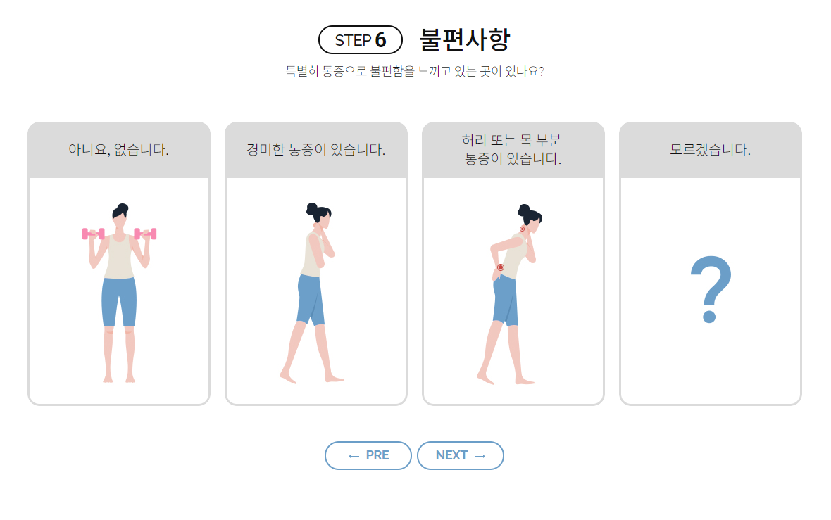 6단계에서는 평소 신체에 불편한 부위나 통증이 있는지를 물어봅니다.