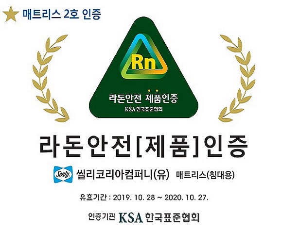 우선 제가 씰리침대에 대한 정보를 확인하기 위해 홈페이지를 방문했었는데요, 아래와 같이 라돈 인증을 받은 내용을 팝업창으로 보여주더라구요. 이렇게 라돈안전제품인증을 홈페이지 시작부터 띄워주니, 더욱 믿음이 갔습니다.