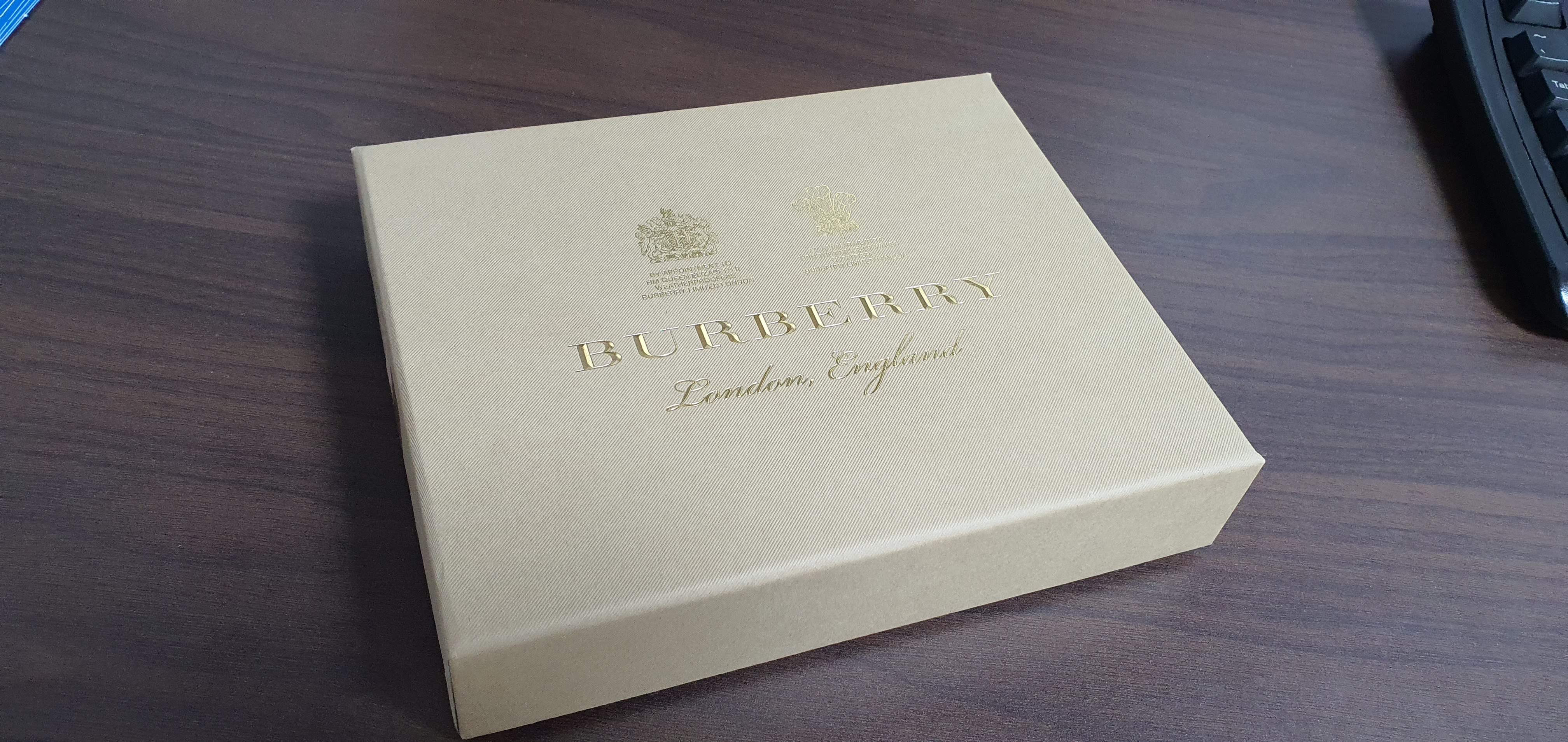 우선 박스입니다. 박스에서부터 BURBERRY라는 금빛 레터링과 함께 한껏 고급스러운 느낌을 주고 있습니다.