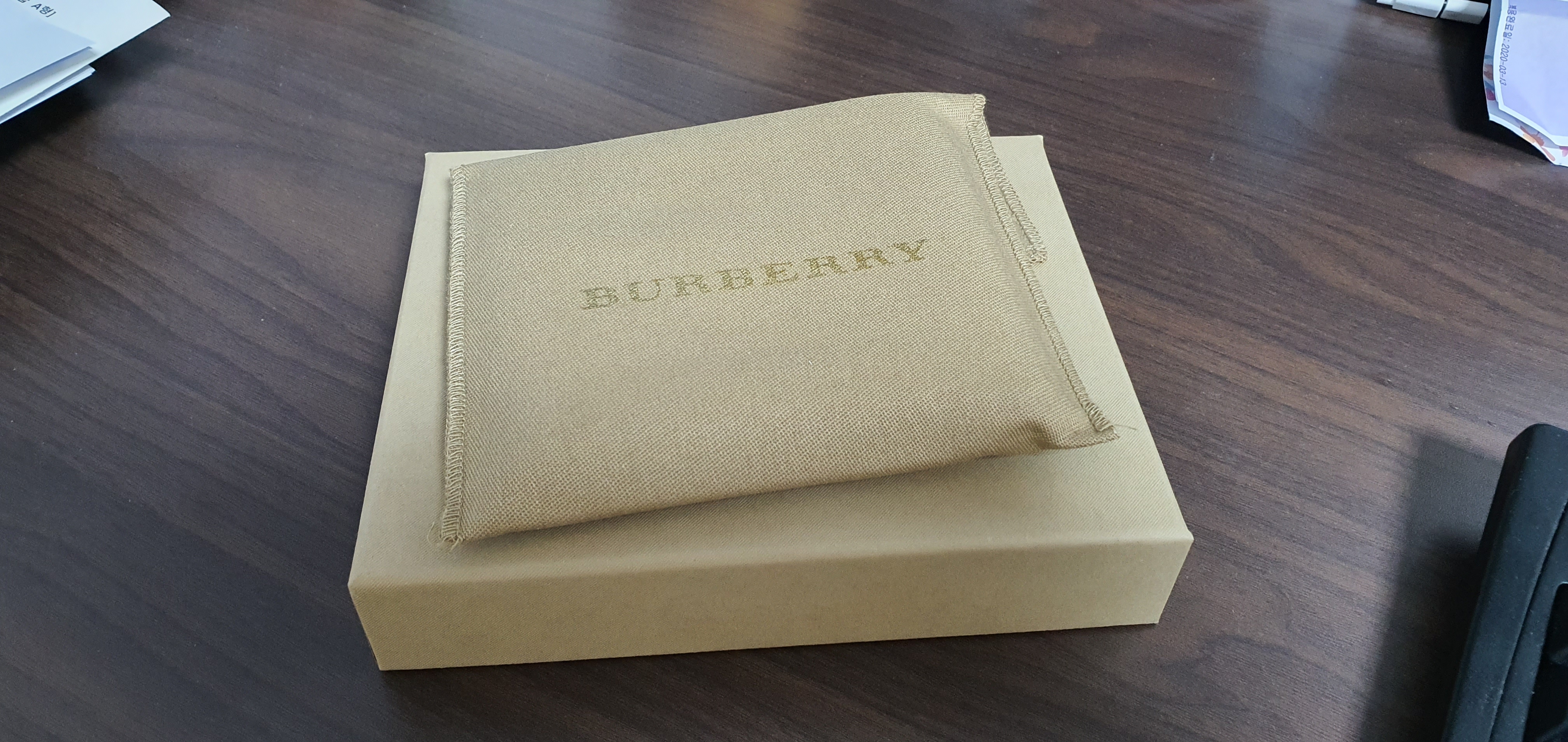 그리고, 지갑은 이러한 고급스러운 천 안에 한번 더 들어가 있습니다. 별다른 데코레이션 없이 저 BURBERRY라는 글자만으로 어떻게 저렇게 고급스러운 이미지를 낼 수 있는지 정말 다시봐도 신기한 것 같습니다.